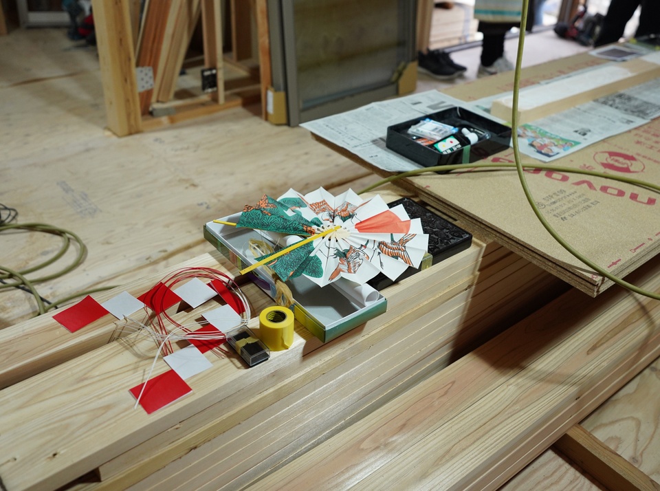 以前、ブログにて紹介させていただいたお家の上棟式を執り行いました。 地鎮祭で見た景色とは違い、お家の形が出来上がってとてもわくわくしました♪ お施主様からは本当に心温まるたくさんのお気遣いをいただき、私達スタッフもとても幸せな気持ちになりました✨ 本日におめでとうございました!! 引き続き安全第一で工事が進み、 素敵なお家が完成するのことを願っています…